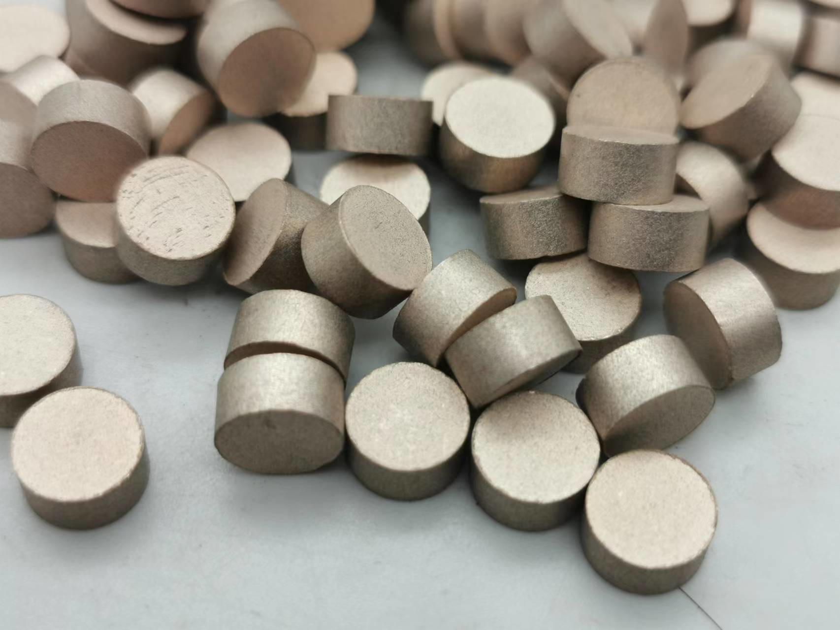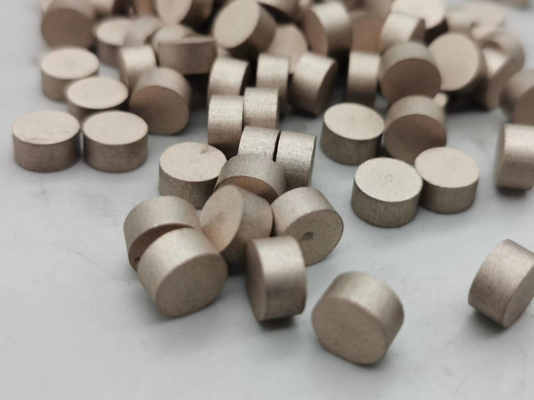 Granulki diamentowe o spoiwie metalowym są stosowane w procesie szlifowania wykańczającego szkieł optycznych. Główną funkcją granulek diamentowych jest usunięcie uszkodzonej warstwy i szorstkiej powierzchni pozostawionej przez proces frezowania, aby zapewnić, że elementy ze szkła optycznego mają określoną wielkość powierzchni i obróbkę margines.Diamentowe granulki o spoiwie metalowym są wytwarzane przez zmieszanie proszku diamentowego, proszku metalowego i filtra, a następnie spiekane przez prasowanie na zimno lub prasowanie na gorąco.