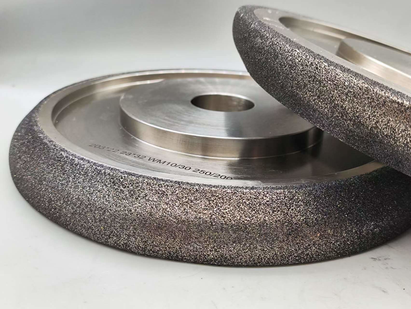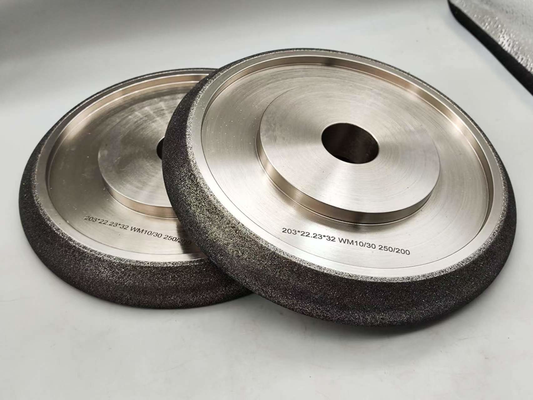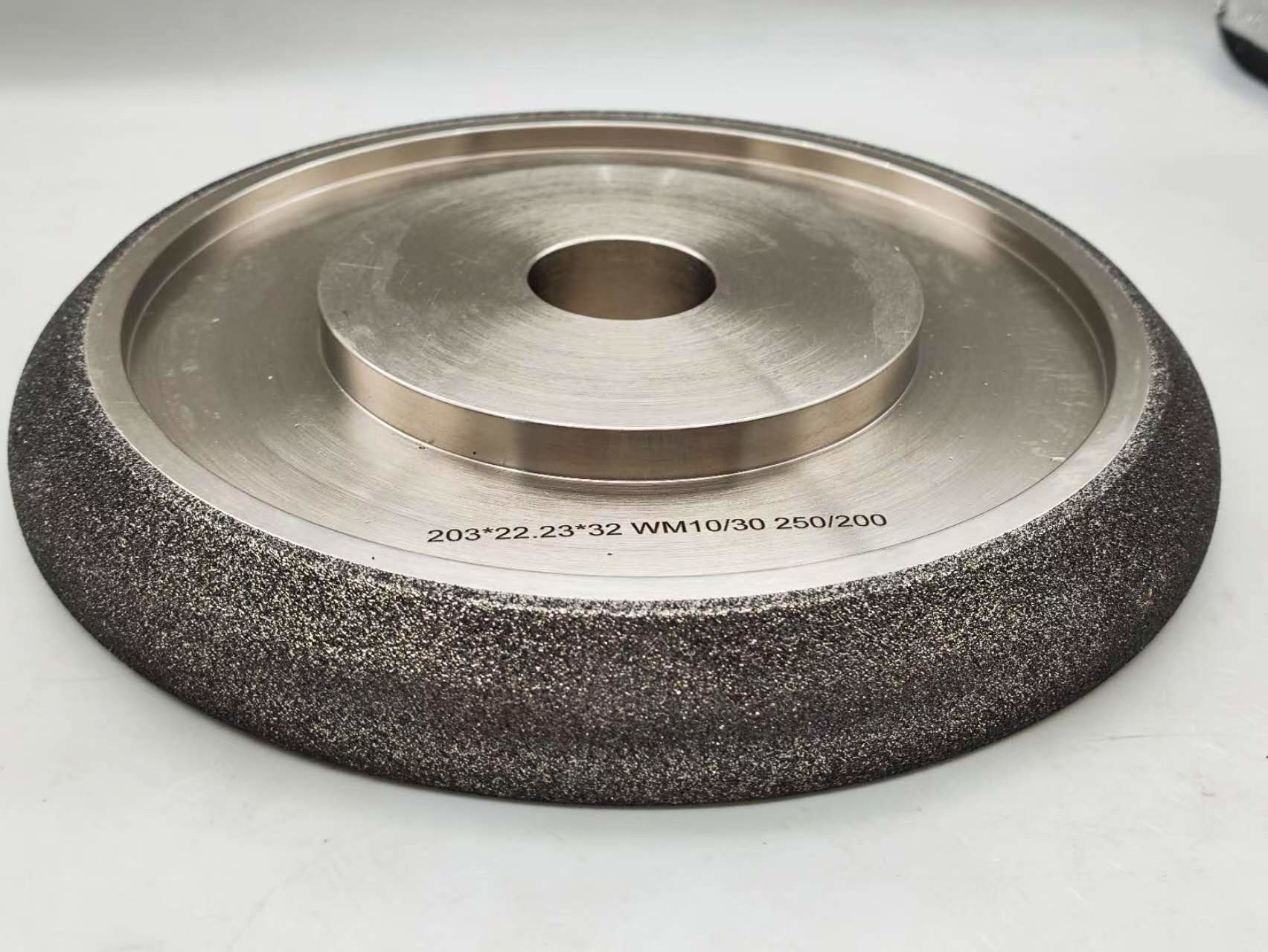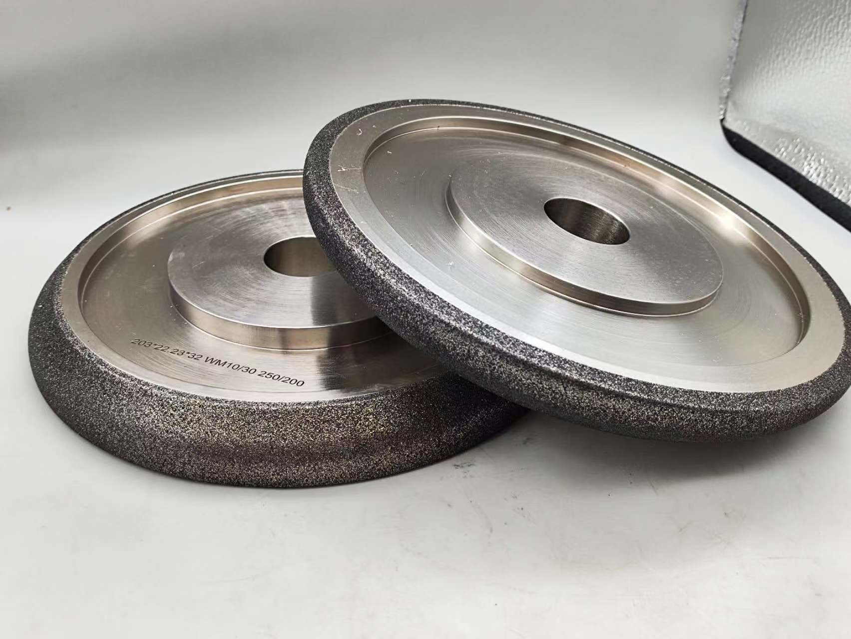Koła szlifujące CBN lub Nitryd Boru Km są elektroplacowane i pokryte niklem.Stwarza bardziej agresywne połączenie w stosunku do innych zastosowań i będzie utrzymywać formę dłużejSą one przeznaczone tylko do ostrzenia piły drewnianej i nie powinny być stosowane do innych zastosowań.